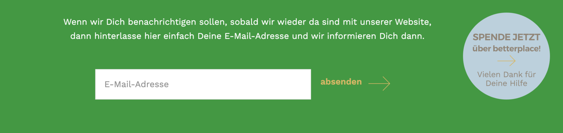 Unsere Website wird gerade überarbeitet und erstrahlt in Kürze wieder in neuem Glanz. Wenn Du ein Anliegen hast oder spenden möchtest, schreib uns gerne einfach eine E-Mail.