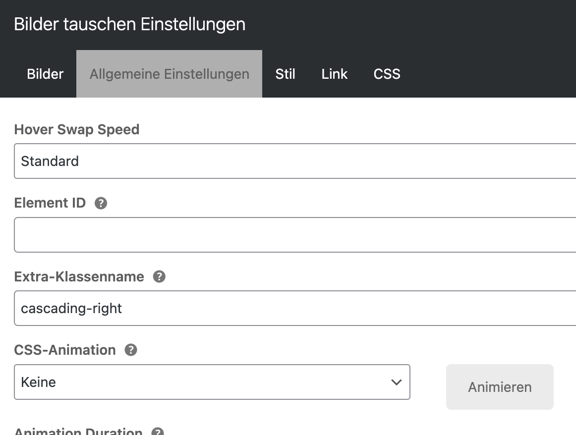 Just add „cascading-left“ or „cascading-right“ to the image swap element and select two images as the front and back images. The swap effect will be overridden with the above CSS.