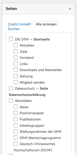 The metaboxes for the menu item selection are a mess. Pagination is not good, elements are skipped. Ordering feels completely random and the overall user experience is not good. With this script in your child themes function.php file you can easily fix that and have a look like in this screenshot.